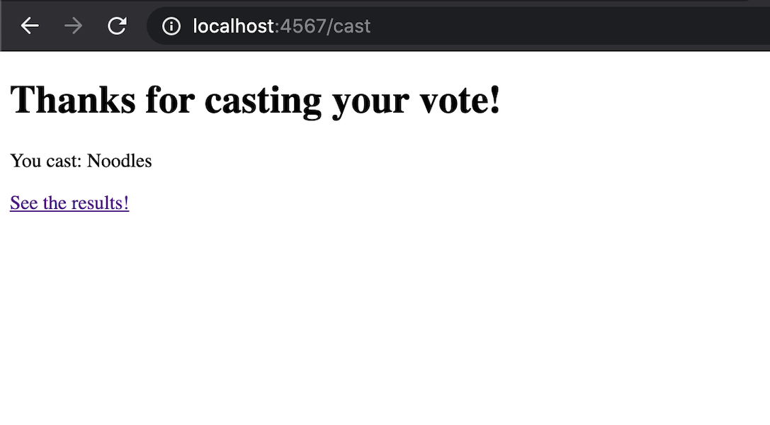 Till now we are able to cast vote. However, now we need to create a page to display our voting result.
