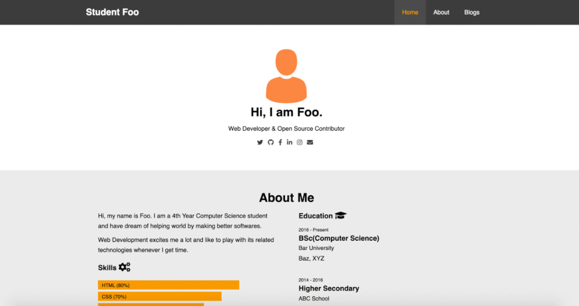 We will build a simple Student Portfolio website in this tutorial. A student portfolio website acts as a way to introduce a student to anyone in the internet and help showcase his or her skills.