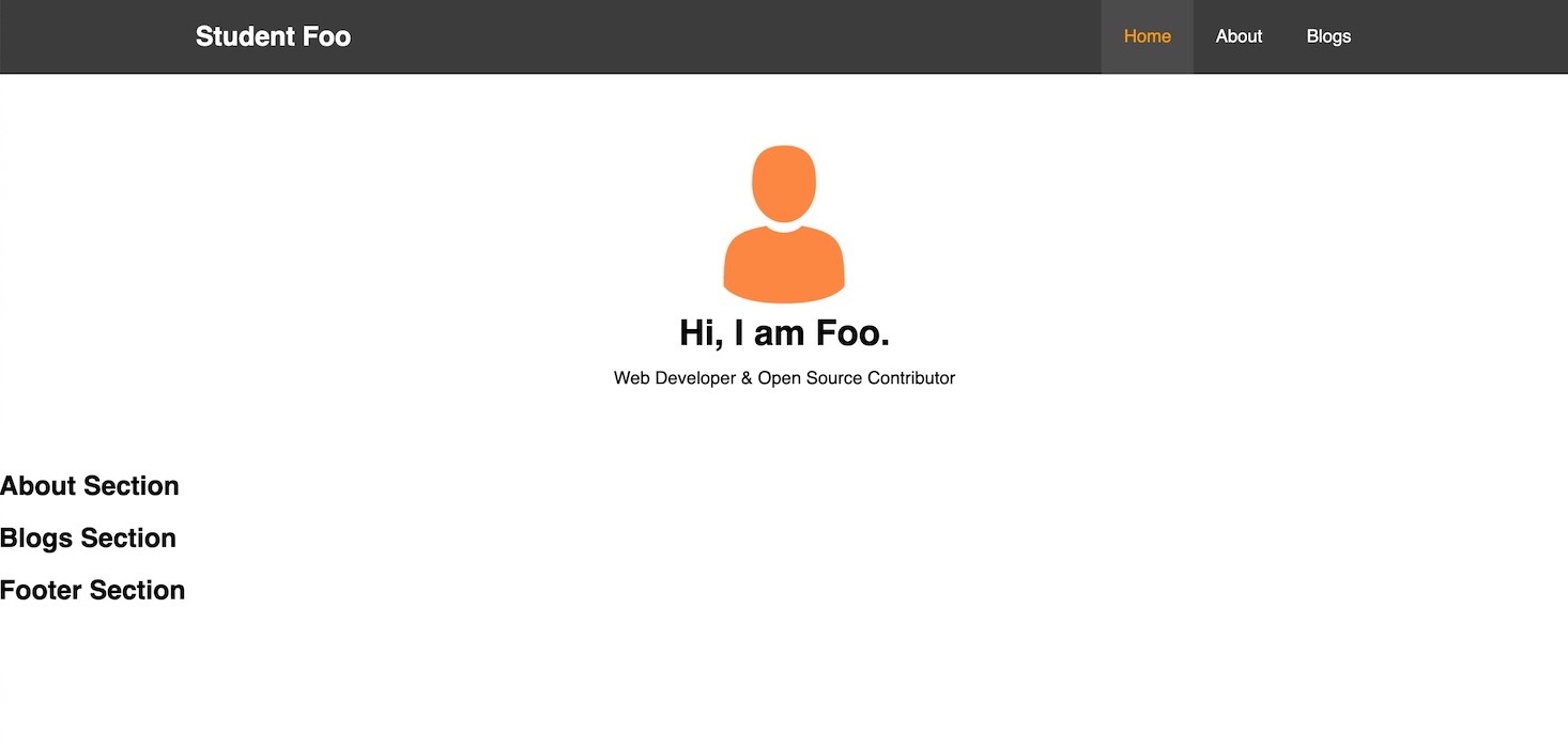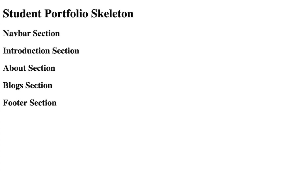 NOTE: Remove the <h1>Student Portfolio Skeleton</h1> and <h2>Navbar Section</h2> lines.
